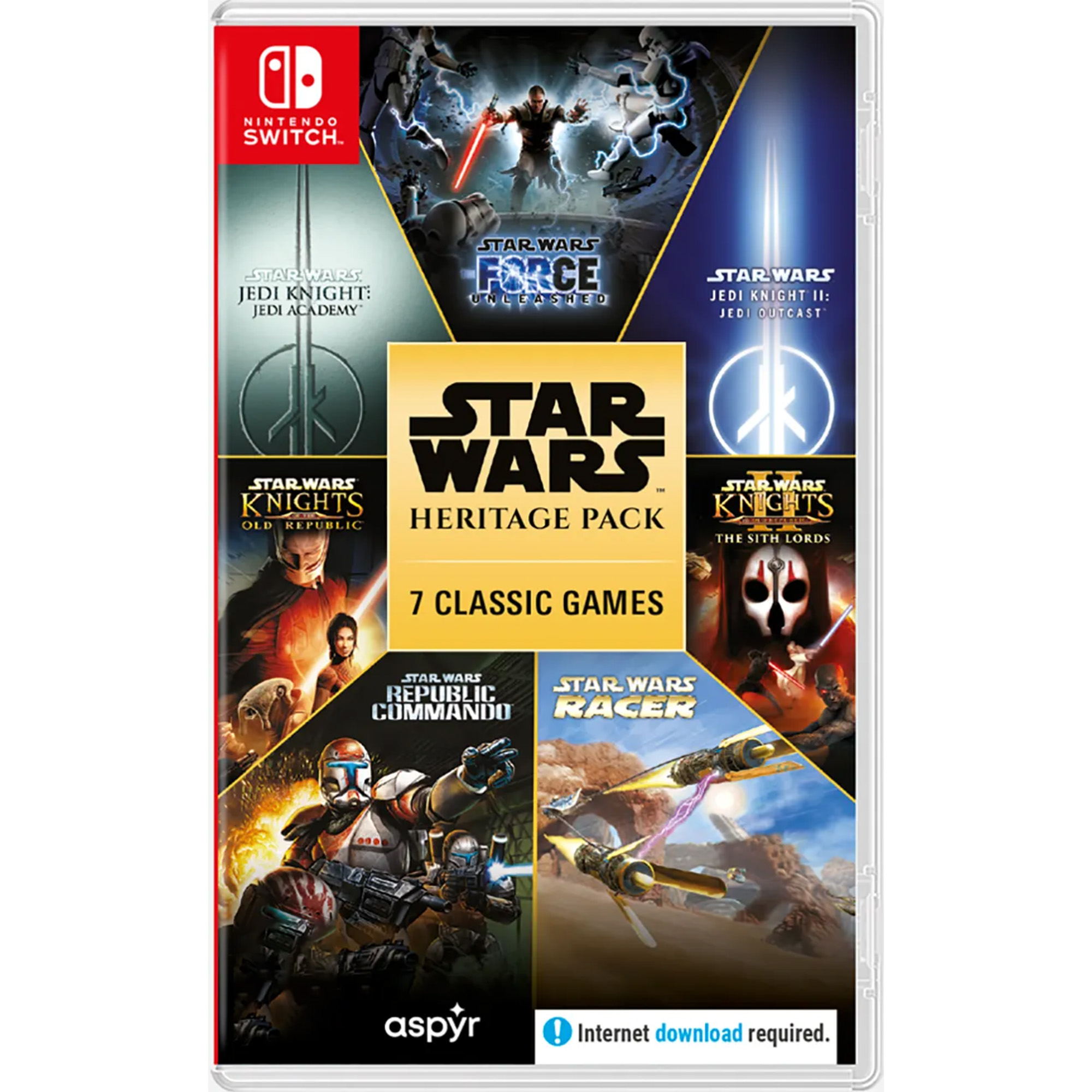 Star Wars Heritage Pack Nintendo Switch [EU] GameXtremePH . Here are more details below, along with a closer look at the cover: Aspyr and Lucasfilm Games are excited to announce a physical release of STAR WARS™ Heritage Pack (2023) for the Nintendo Switch™. This physical package will contain 7 Star Wars games in total, with 5 games on the cartridge and 2 games (KOTOR and KOTOR II) as digital downloads
